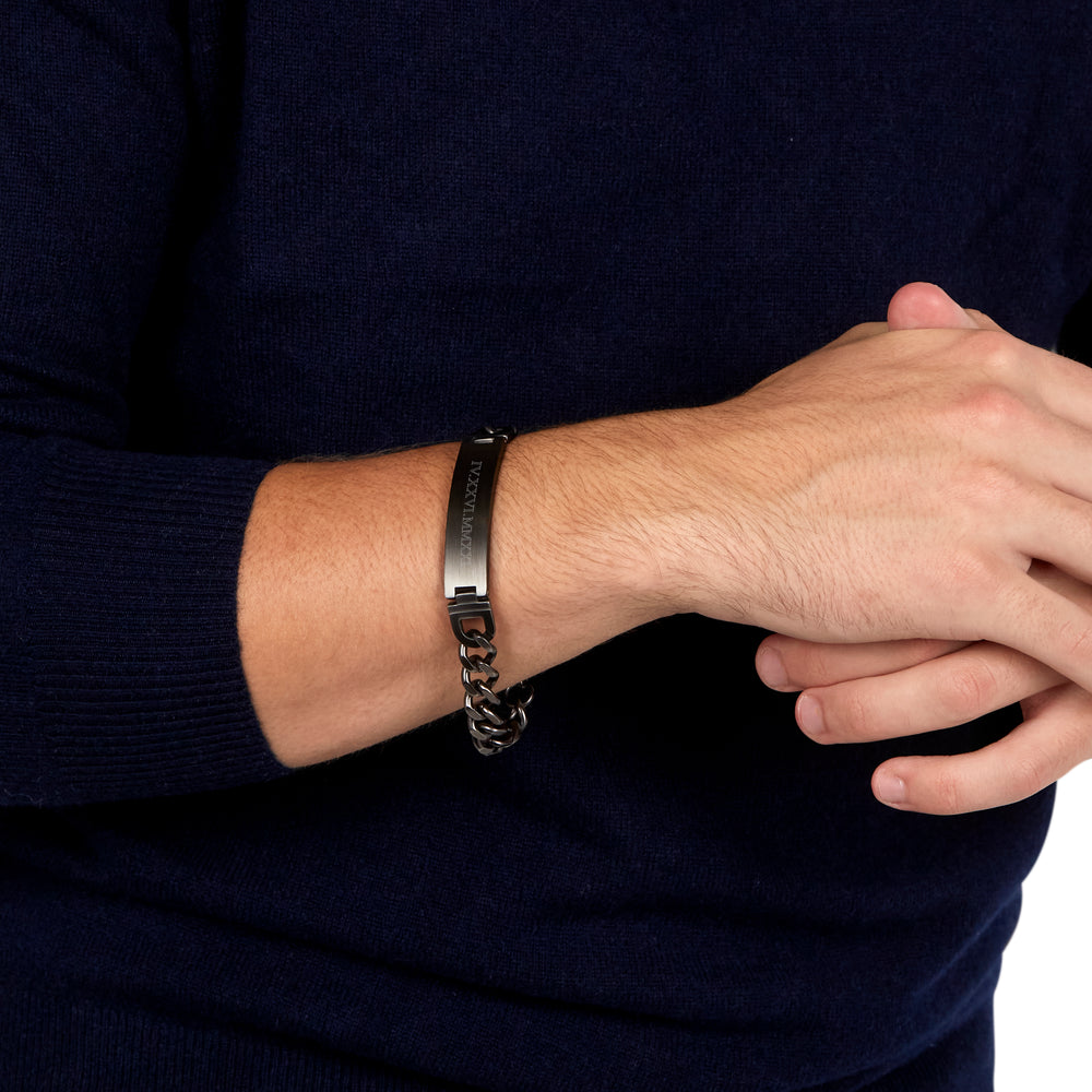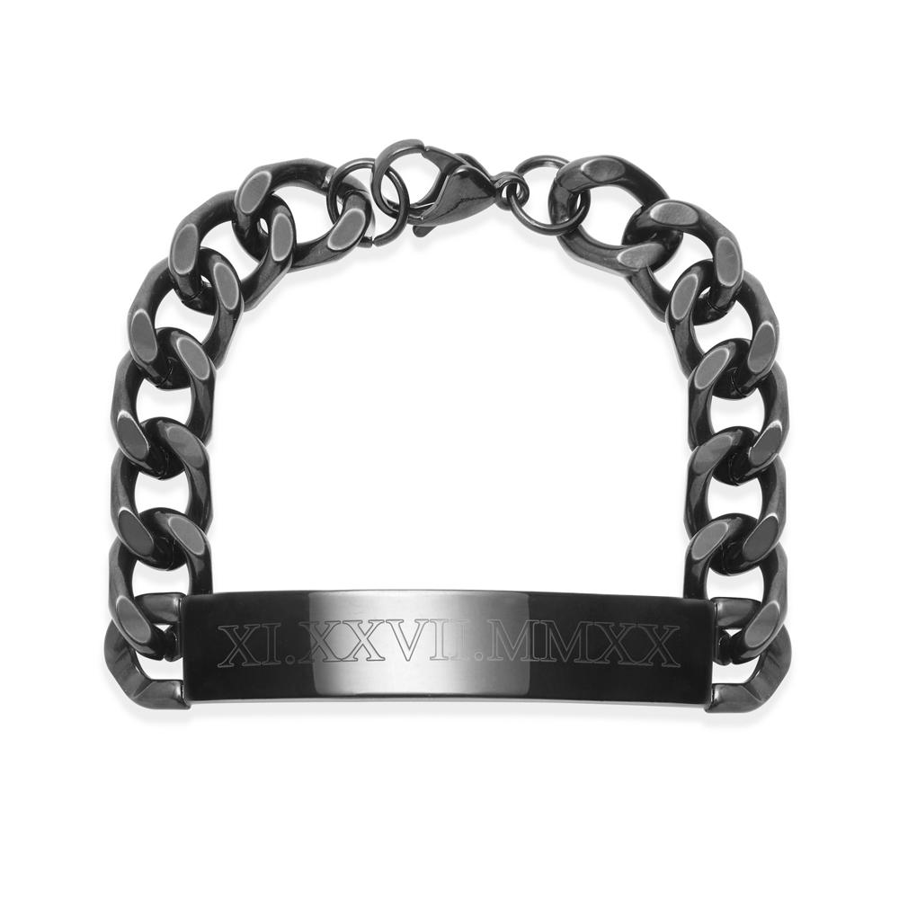 Men's Custom Roman Numeral Black Stainless Steel ID Bracelet