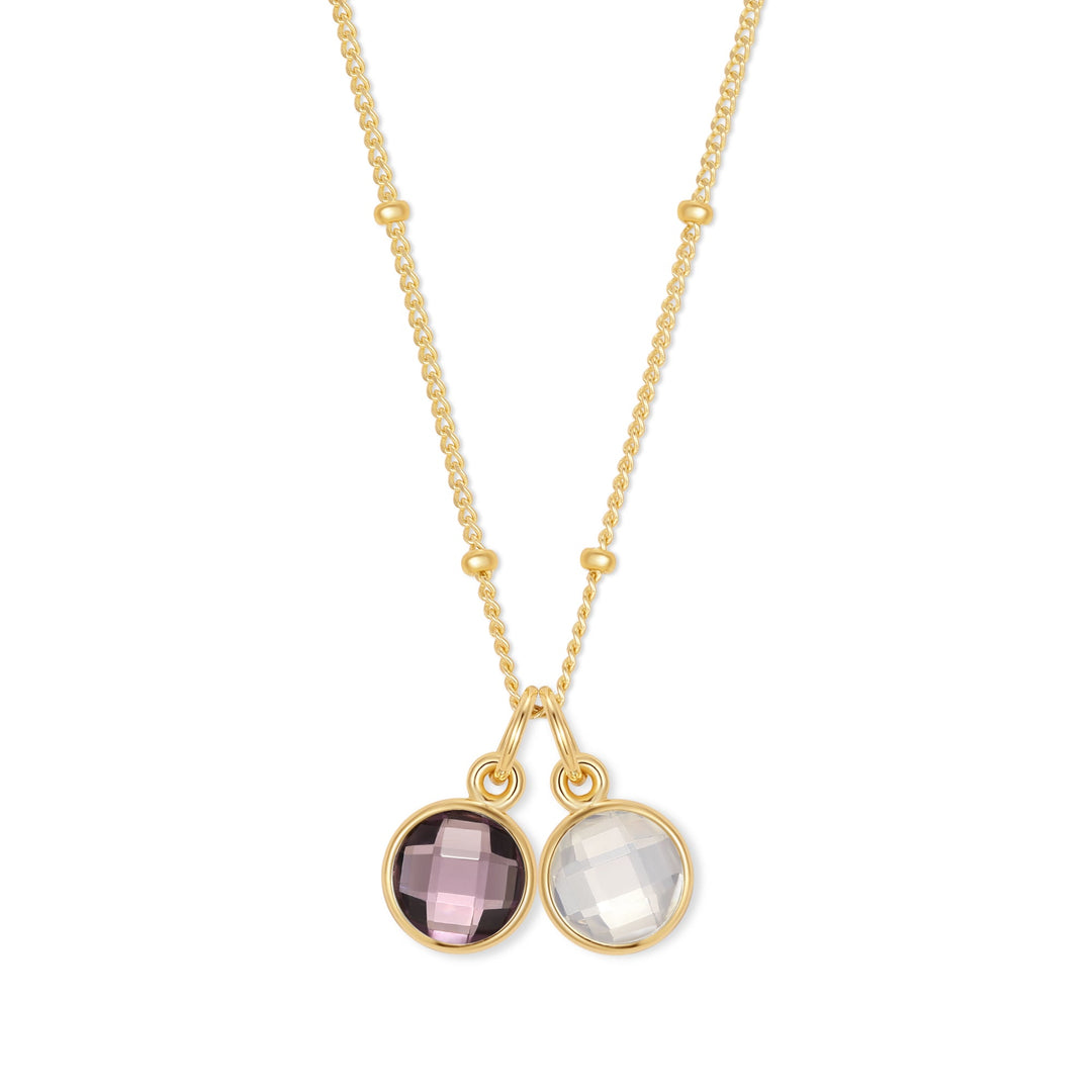 Create a personalized gemstone necklace. Beautiful gemstones add color to a variety of necklace options. Create a colorful personalized gemstone necklace! The new gemstone necklace collection features the gemstones of each month, for you to wear the gemstone of your birthday. The most trending style is the gemstone bar necklace, where the gemstone is shaped like a bar charm and connected to a silver or gold chain. For a style that is popular to give to your mom or grandma look at the Cushion Cut Gemstone Necklace, where the gemstone is shaped in a classic square that she could wear everyday.