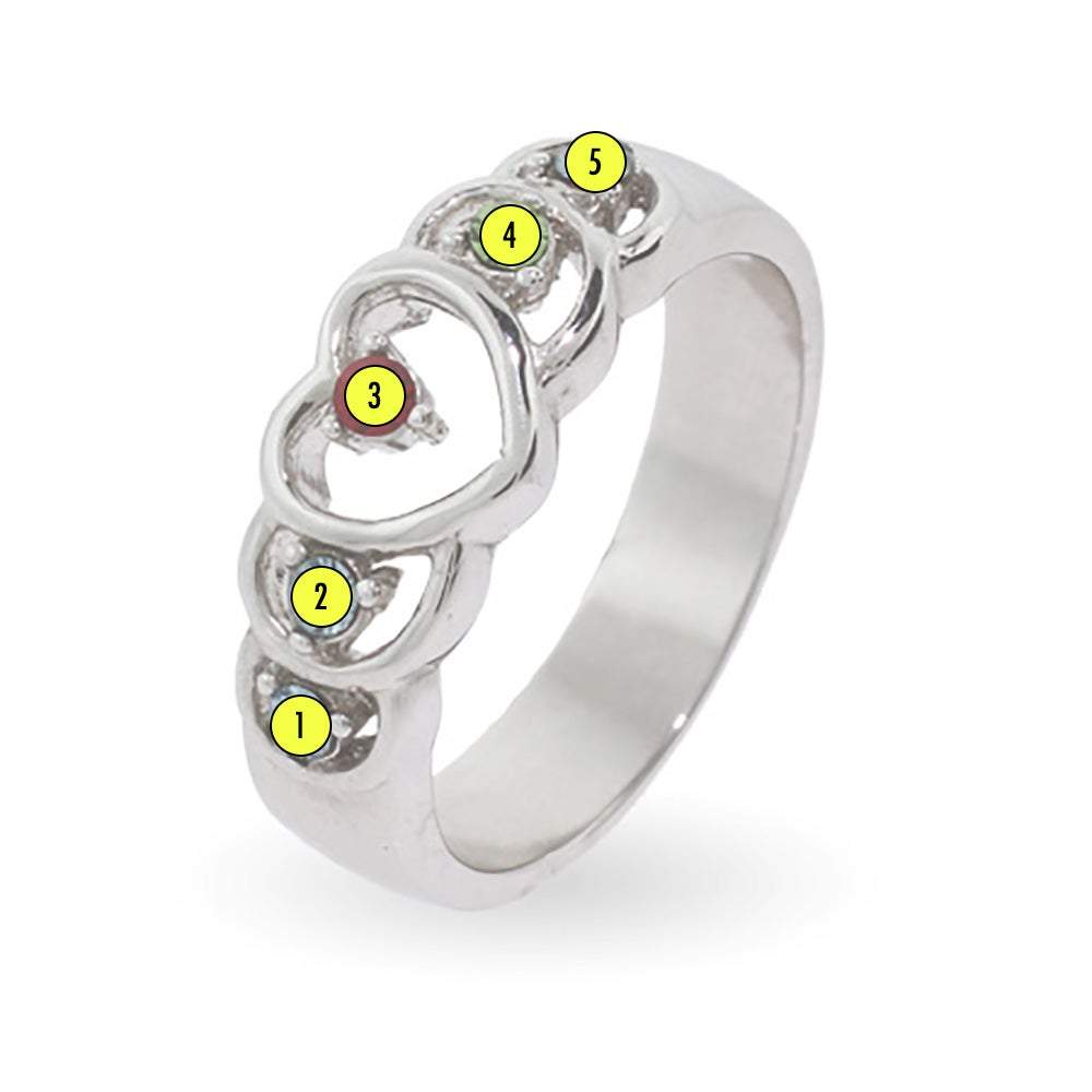 5 Stone Sterling Silver Heart Mother's Ring with Custom Birthstones