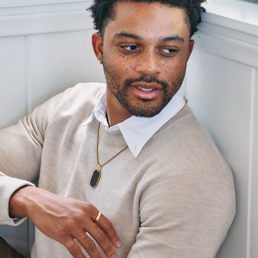 Men's 18k Gold Plated Stainless Steel and Black Carbon Fiber Dog Tag Pendant