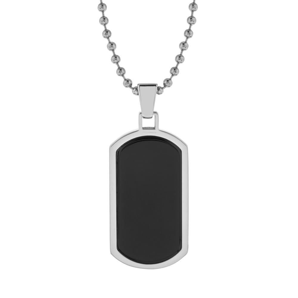Men's Stainless Steel and Black Carbon Fiber Dog Tag Pendant