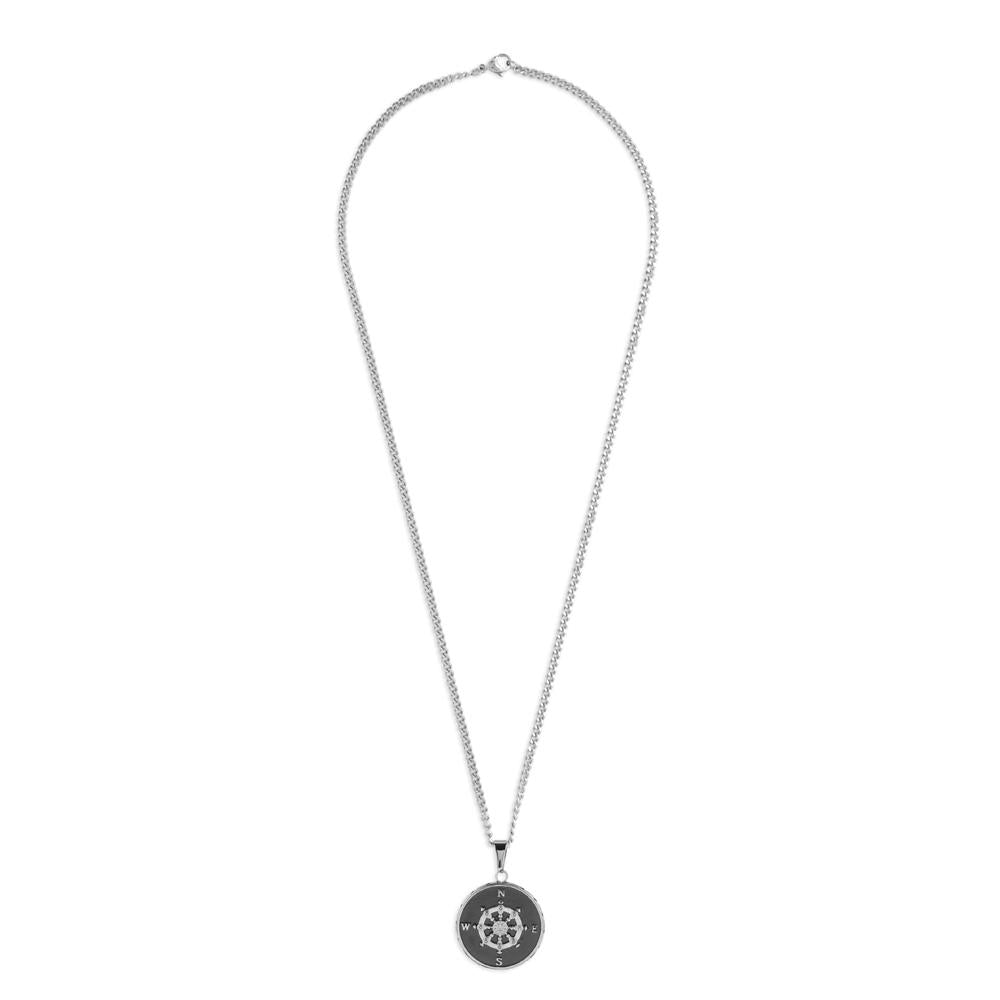 Custom Coordinate Men's Black Stainless Steel Circle Pendant