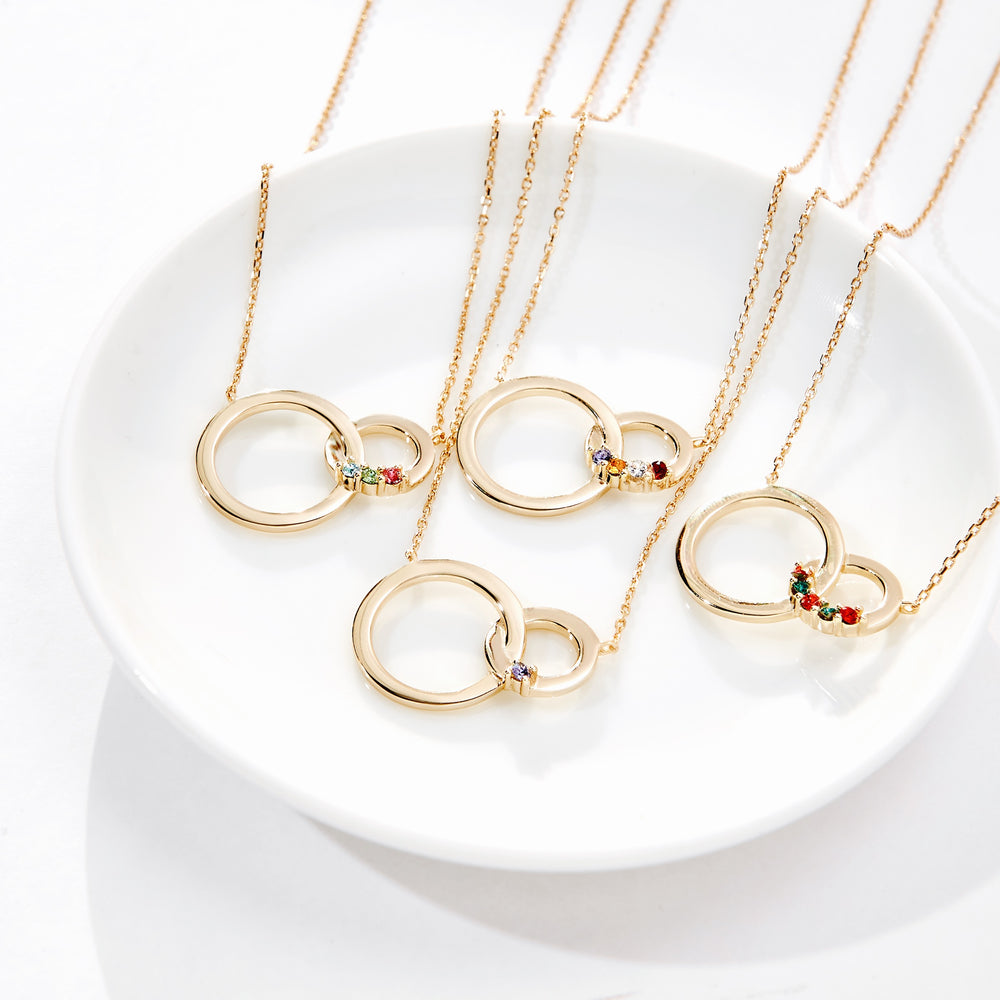 Crafted in high-quality materials such as sterling silver and gold vermeil, these necklaces are made to last — just like the promise they symbolize. Whether you’re shopping for a special occasion like Valentine’s Day, Mother’s Day, or an anniversary, or just because, you’ll find pieces that speak volumes with simplicity and style. Our 2 Stone Gold Interlocking Circle Eternity Birthstone Necklace is a perfect birthstone gift for mom, with up to five birthstones to represent her children. Add a heart birthstone to your personalized infinity necklace like the Infinity Custom Heart Birthstone Necklace. Embrace your special connection and express your love with a piece from the Infinity Necklaces Collection — designed to be worn close to the heart, always.