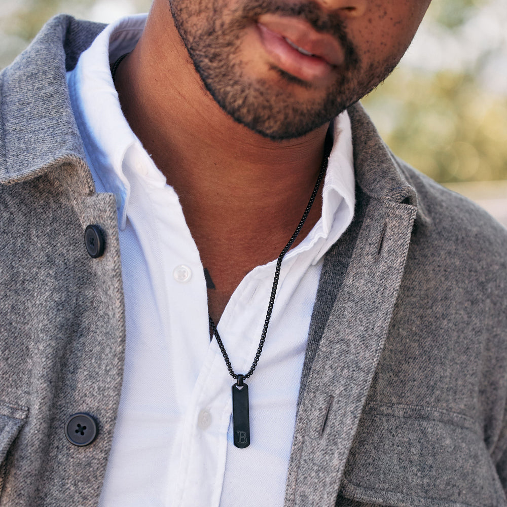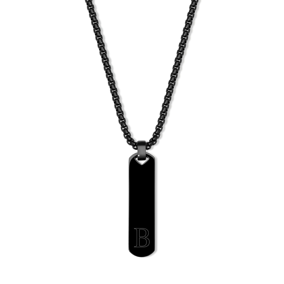 Men's Engravable Black Vertical Bar Necklace