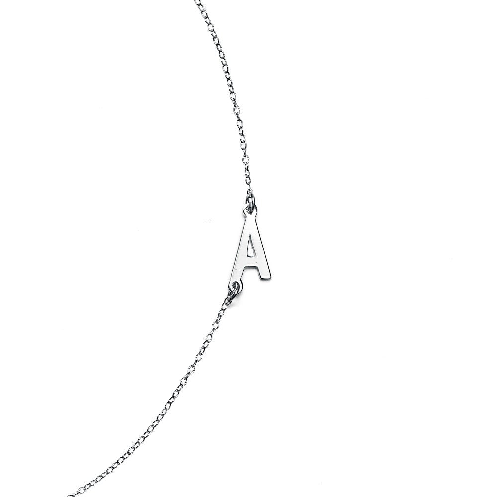 14K White Gold Sideways Initial Necklace