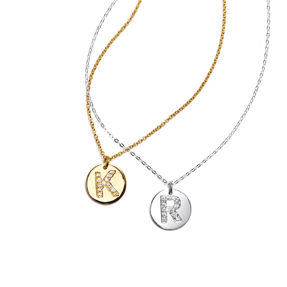 14K White Gold Diamond Initial Disc Necklace