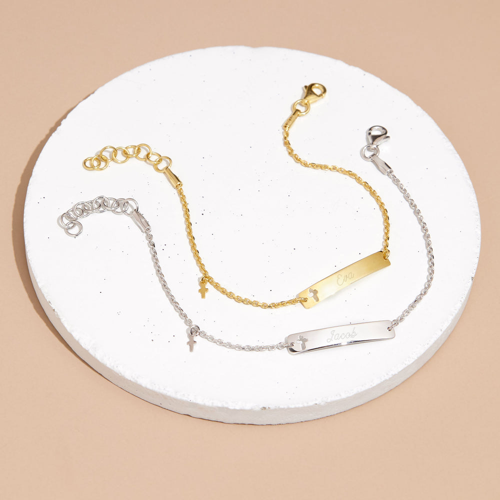 Celebrate your new arrival or growing little one with Mill Rock East’s Children’s Jewelry collection— designed to celebrate every milestone they reach. We offer a great selection of adorable charm bracelets, engravable necklaces, and children's earrings. With Engravable Bracelets, like the Engravable Gold Baby Name Bar Bracelet, and matching Mother Daughter Jewelry, like the Mom & Baby Monogram Gold Disc Bolo Bracelet Set, each piece is thoughtfully crafted to capture the preciousness of your sweet child.