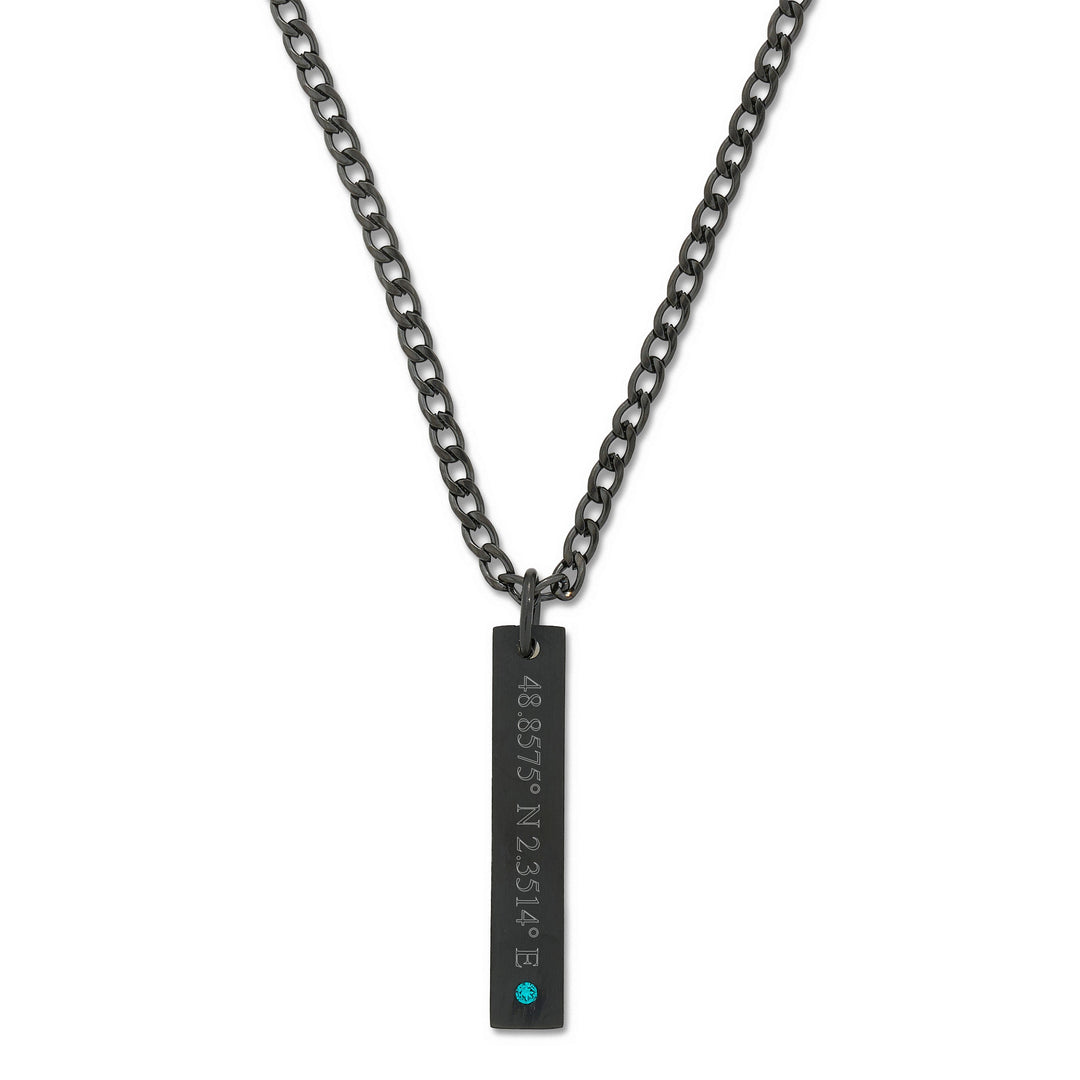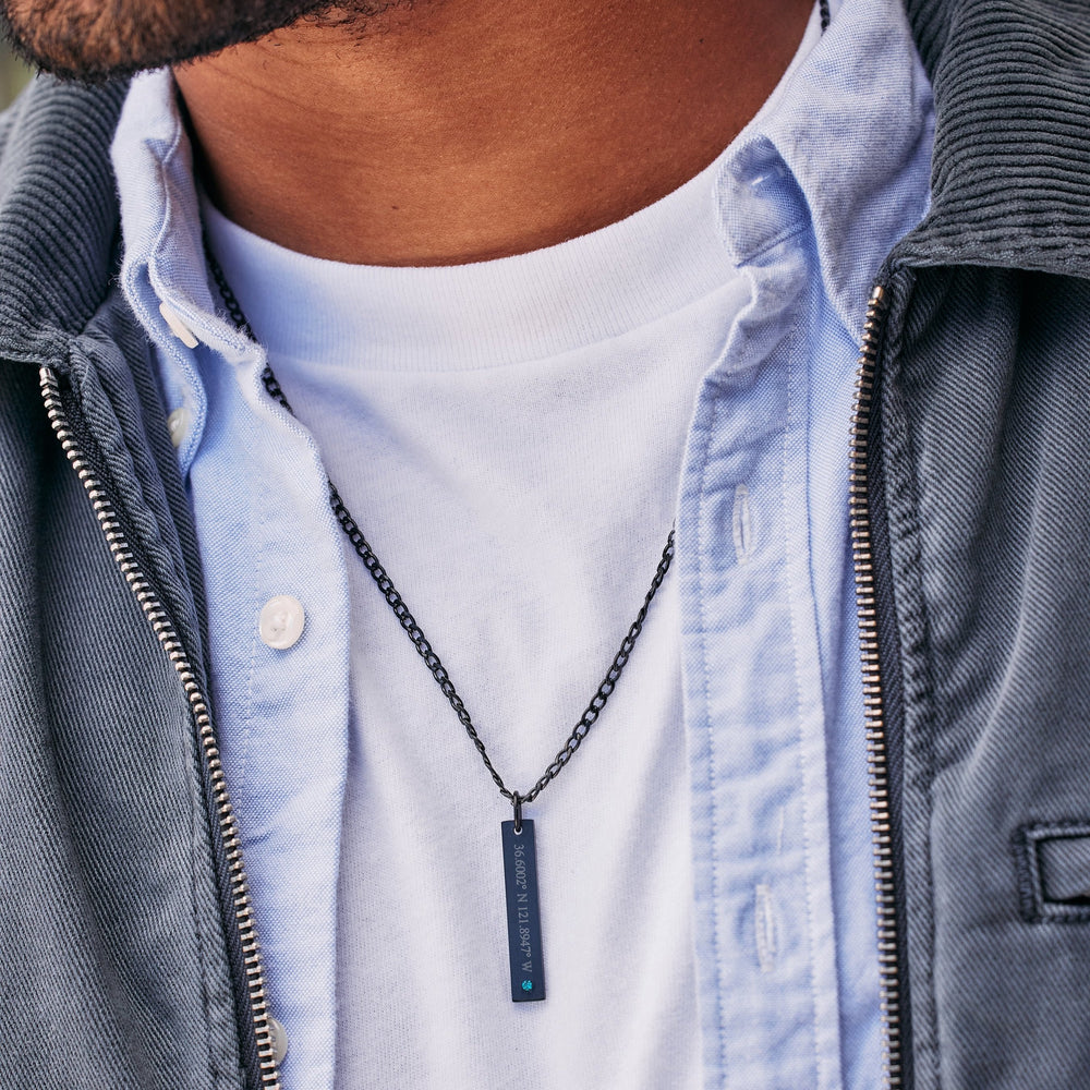 Custom Coordinate Men's Stainless Steel Vertical Birthstone Pendant