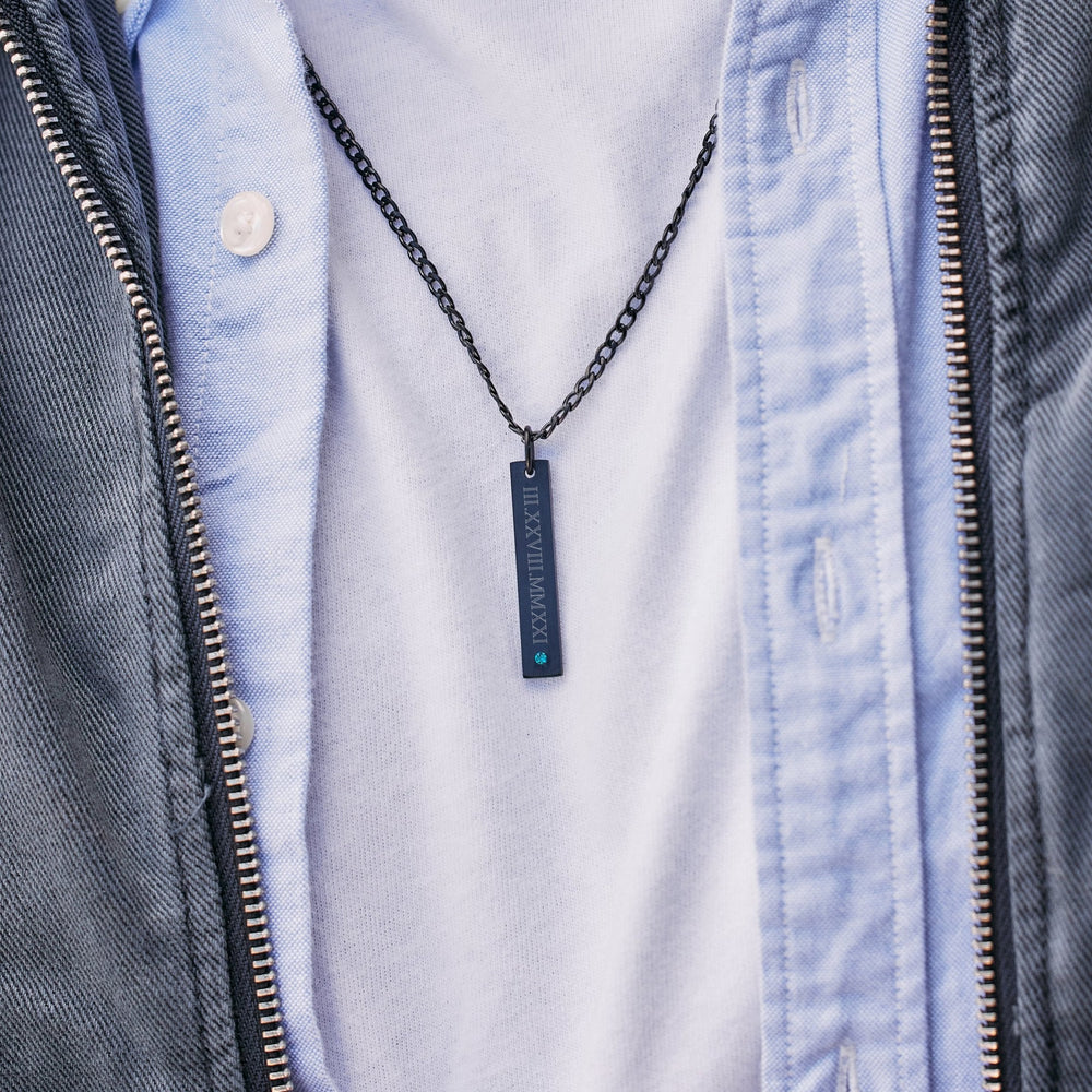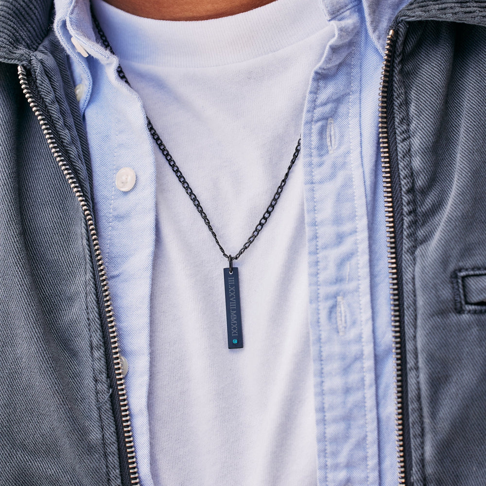 Men's Engravable Stainless Steel Vertical Birthstone Pendant