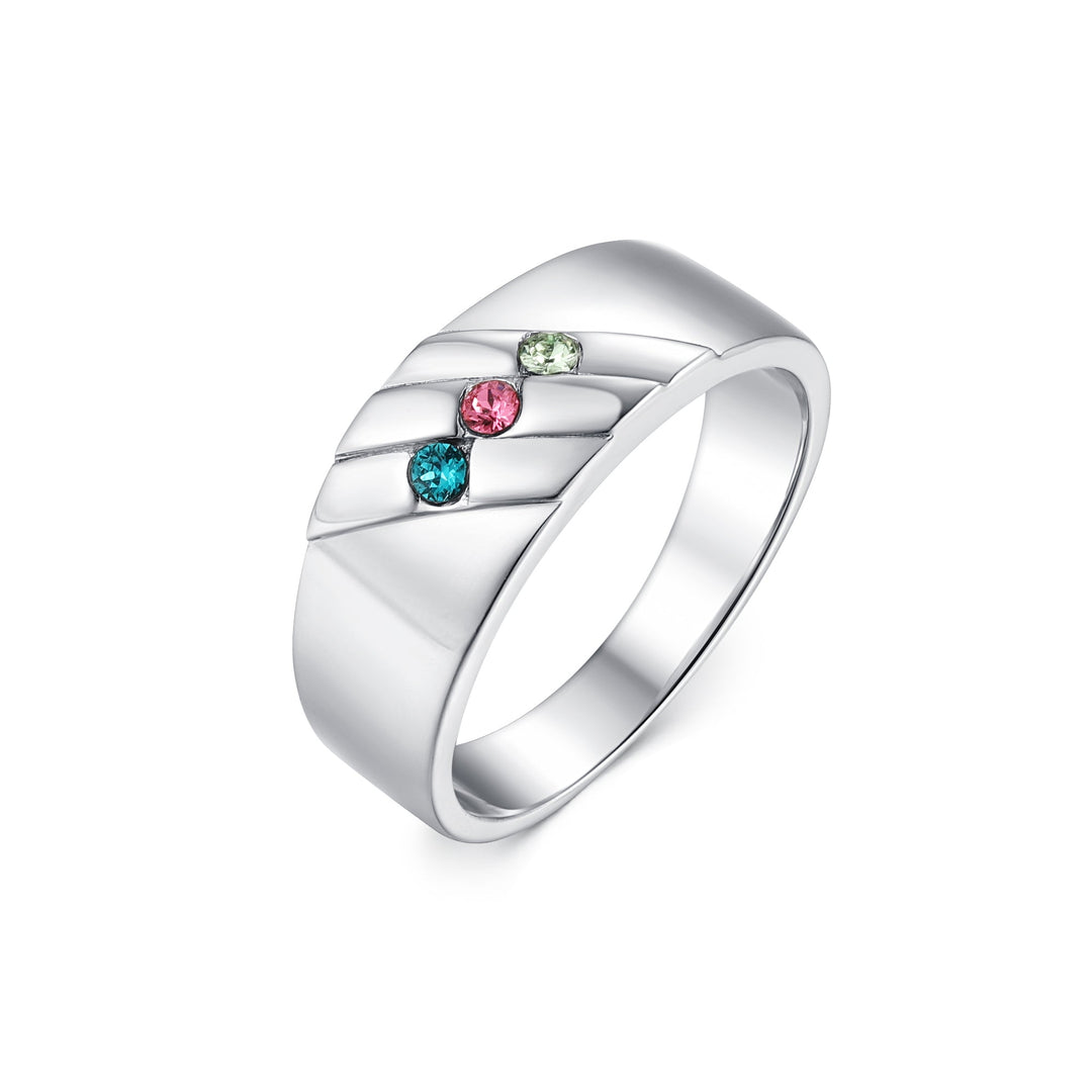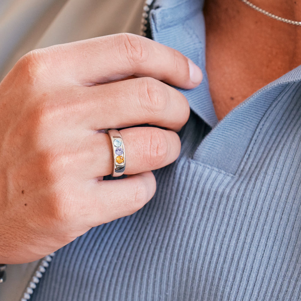 Men's Sterling Silver 3 Stone Family Birthstone Ring
