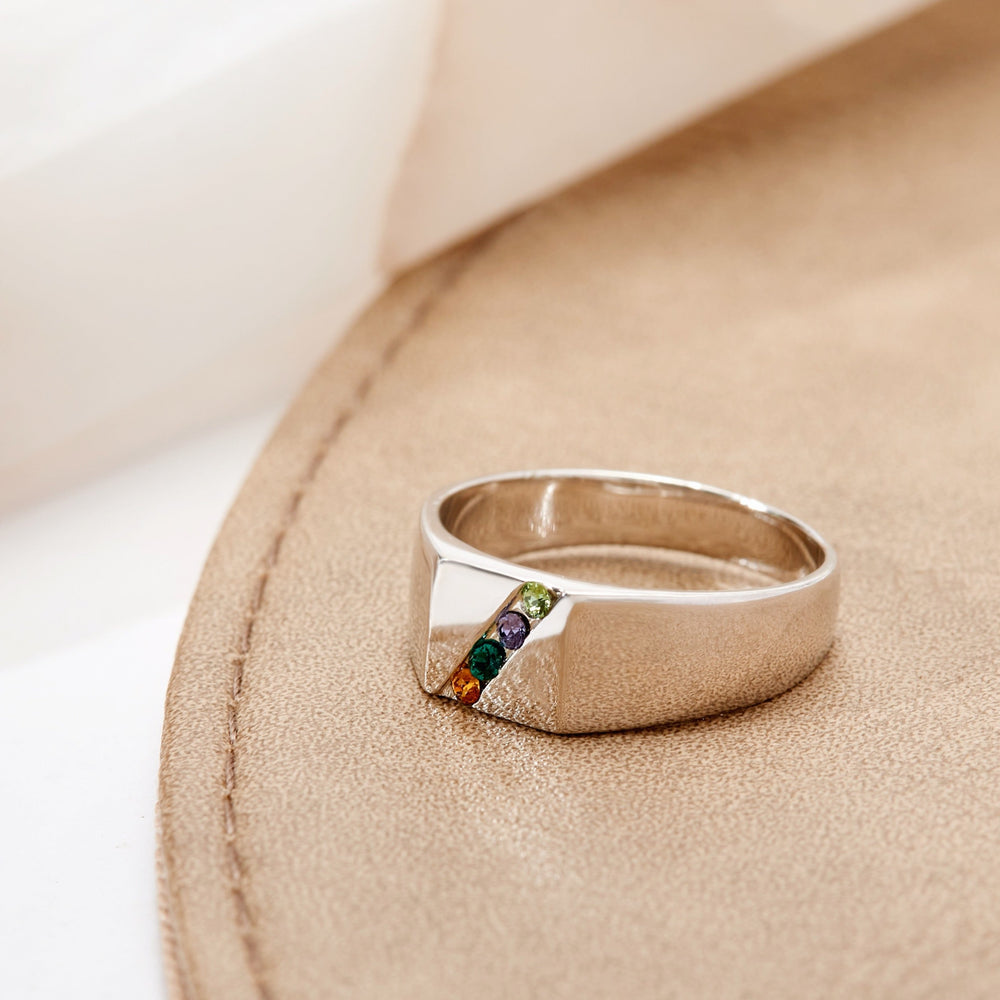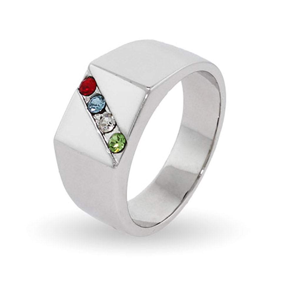 4 Stone Men's Custom Family Birthstone Austrian Crystal Ring