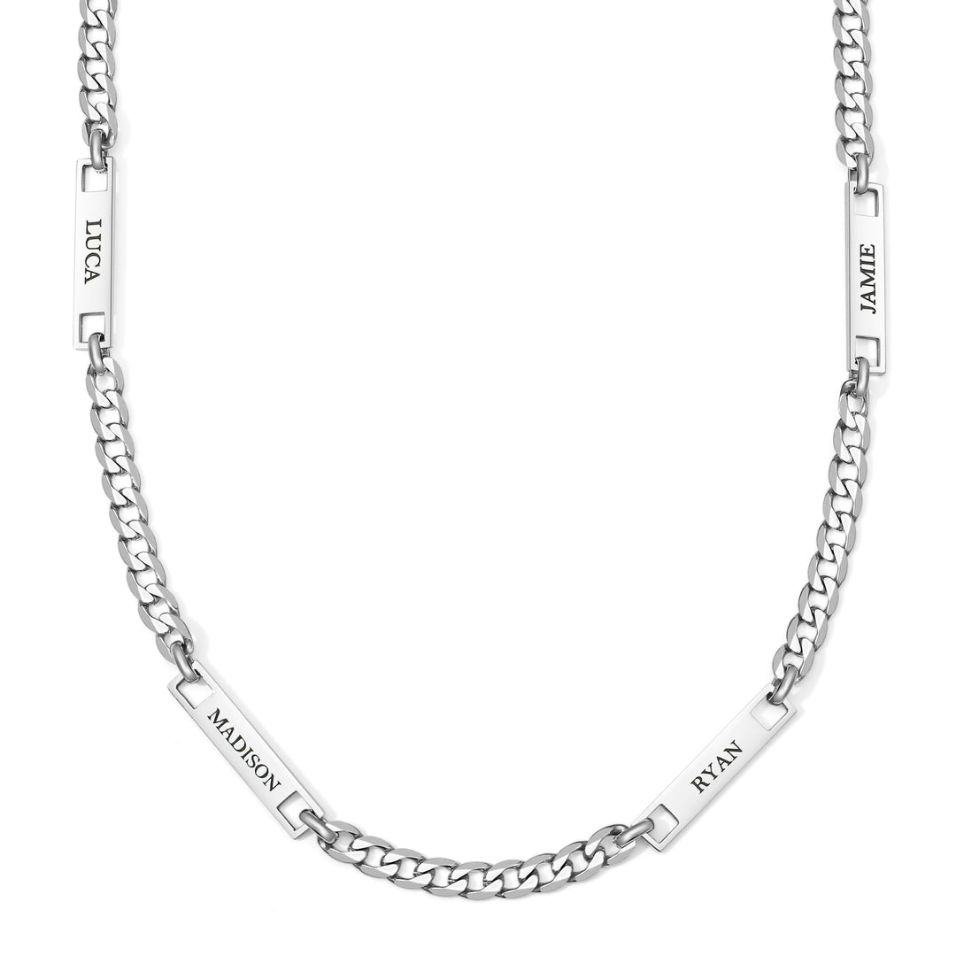 At Mill Rock East, our custom bar necklaces come in many styles, name counts, and shapes so that you can find the perfect piece for anyone on your list, including yourself! When designing our Engravable Necklaces, we focus on simple but elegant everyday wear that lets your customization shine. Many of our custom name jewelry pieces, like the Triple Vertical Name Bar Pendant in Gold, and our Men’s Nameplates, like the Stainless Steel Figaro Chain Engravable Four Name Bar Necklace, have options for multiple names. Start customizing today and find the perfect custom name bar necklace for someone you love at Mill Rock East.