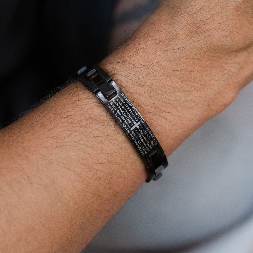 Men's Custom Roman Numeral Matte Black Leather Bracelet