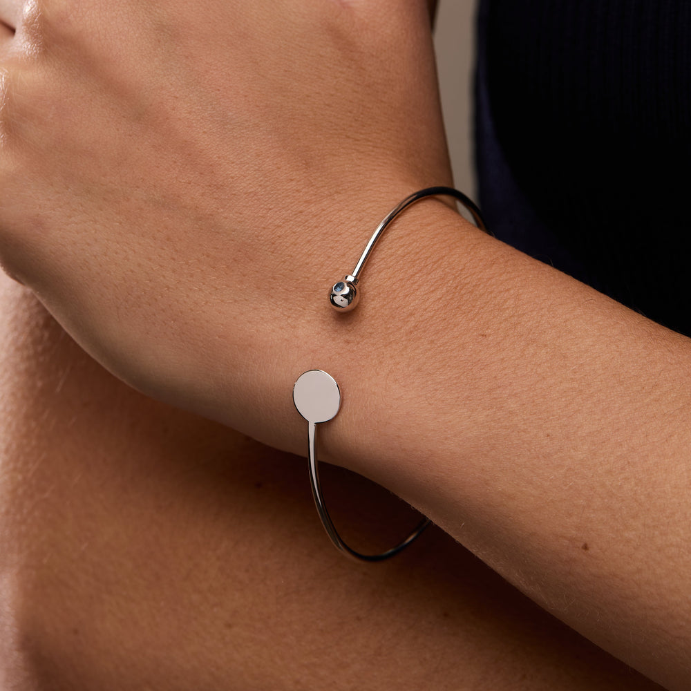 Hand Stamped Initial Birthstone Silver Bangle Bracelet