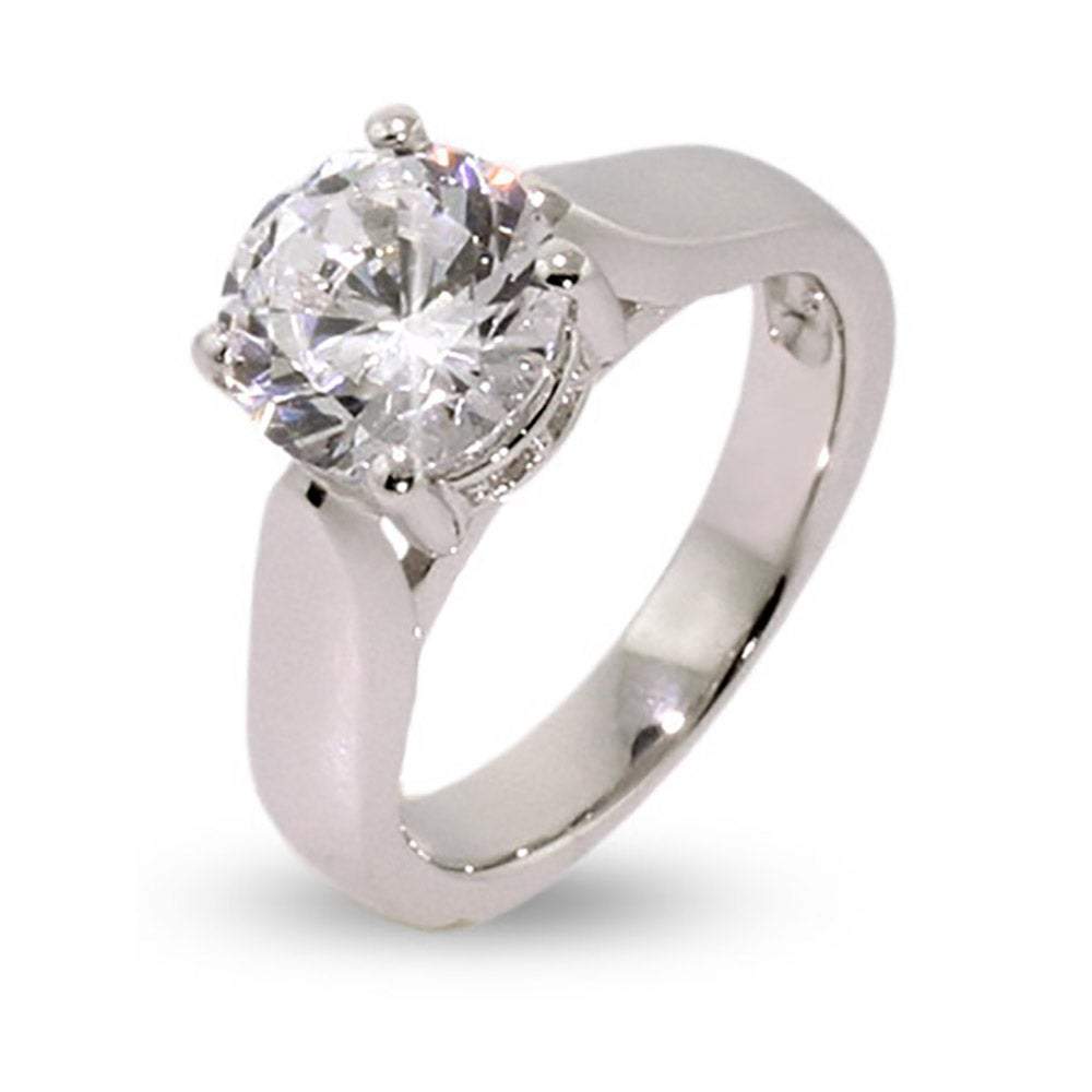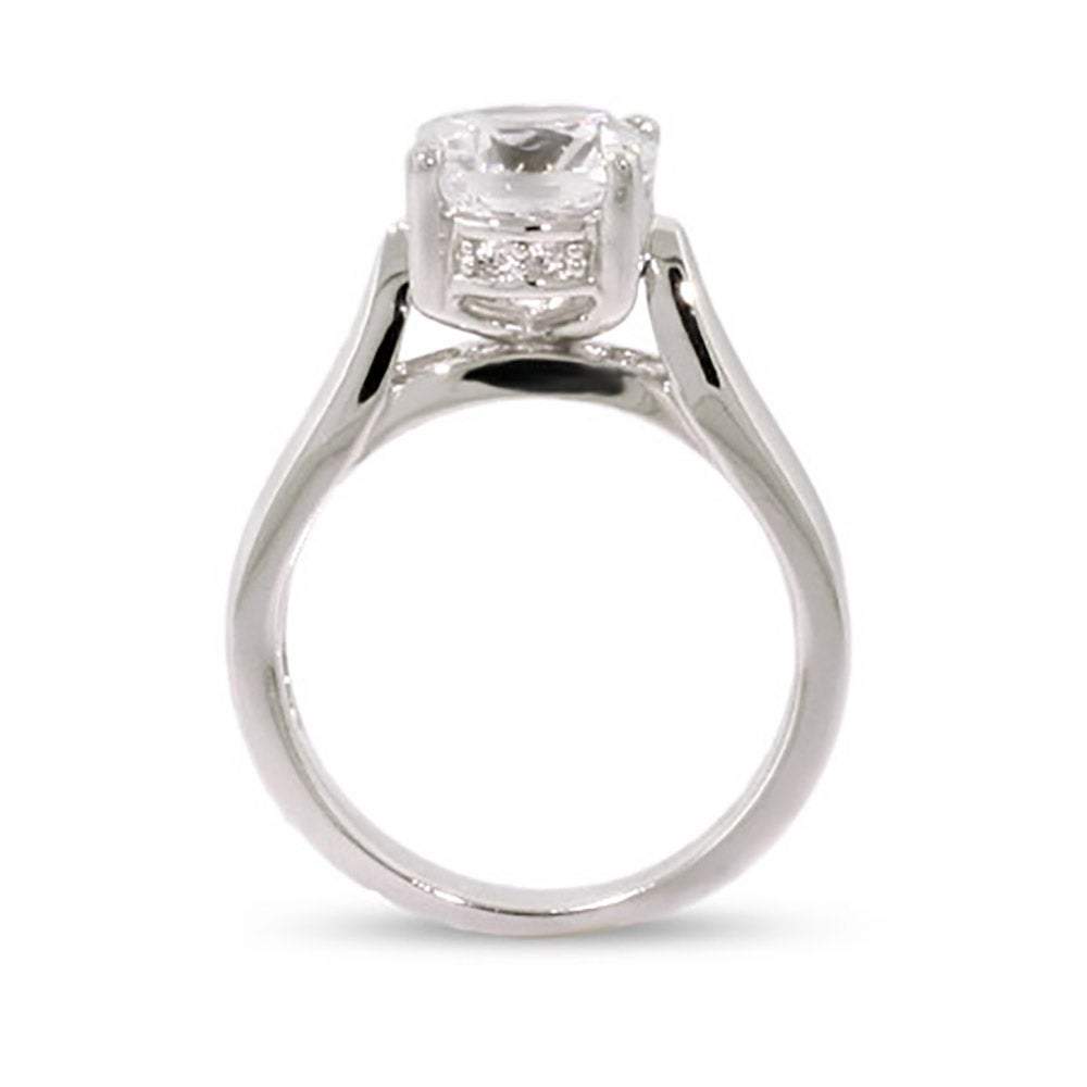 Many people opt for a sterling silver engagement ring because they want a higher quality setting even if they can't yet afford a real diamond. These designs feature real .925 sterling silver settings that won't turn unsightly colors on your finger and look identical to the real thing. Depending on the quality of your silver or rhodium engagement ring, that will be the difference in whether or not someone can tell if your wedding ring is real of not. That's why it's best if you plan on wearing your faux diamond ring for quite some time, to invest in a nicer sterling silver band setting. Sterling silver engagement rings with cubic zirconia also have a lighter weight than rhodium styles, which is more comfortable to wear.