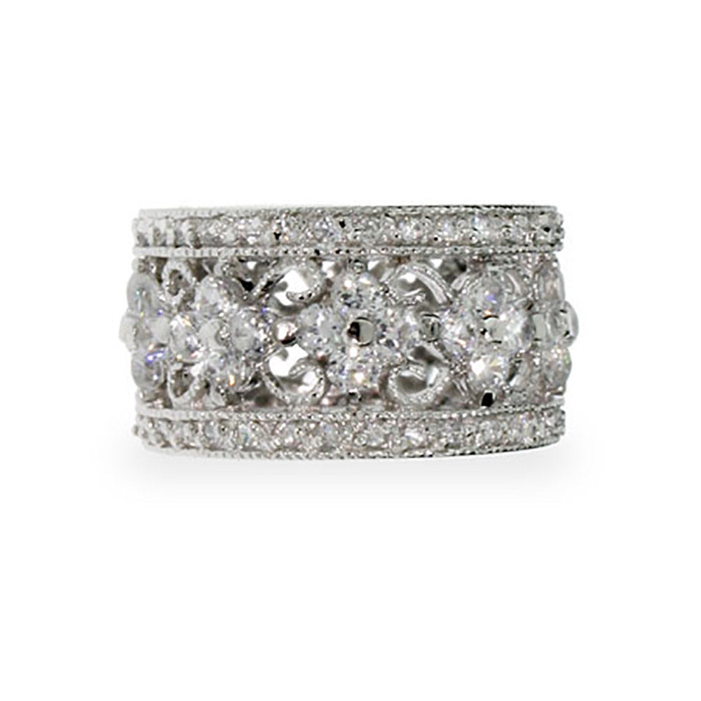 "Art Deco" refers to a period in the 1930's when new technologies allowed for designers in almost any field to create sleeker more intricate designs. Though it started out in the engagement ring jewelry industry as sleek and sophisticated designs of a simplistic nature, it soon flourished into an almost baroque-esk level of intricate architectural works. Engagement rings became larger, more elaborate, and just increased in size. These vintage inspired art deco cz rings are mimics of the most popular retro style engagement rings from that time and are still very popular today. If you were to purchase one of these art deco rings with a real diamond, they would easily be in the multiple thousand-dollar range, and we don't mean 1 – 10K, try 10 - 20K. These lovely art deco reproduction rings use an authentic vintage ring setting with high quality materials using very durable and long lasting cubic zircon stones.