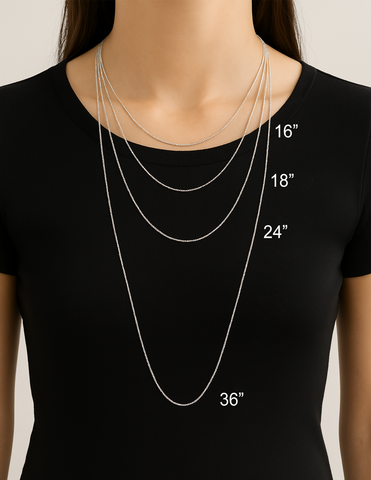 Sits just above the collarbone and wears like a choker. Ideal for petite frames or layering with longer pieces.